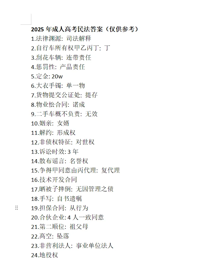 所在位置:江西成考网 > 试题题库 > 专起本 > 2025年成人高考专升本【民法】真题答案